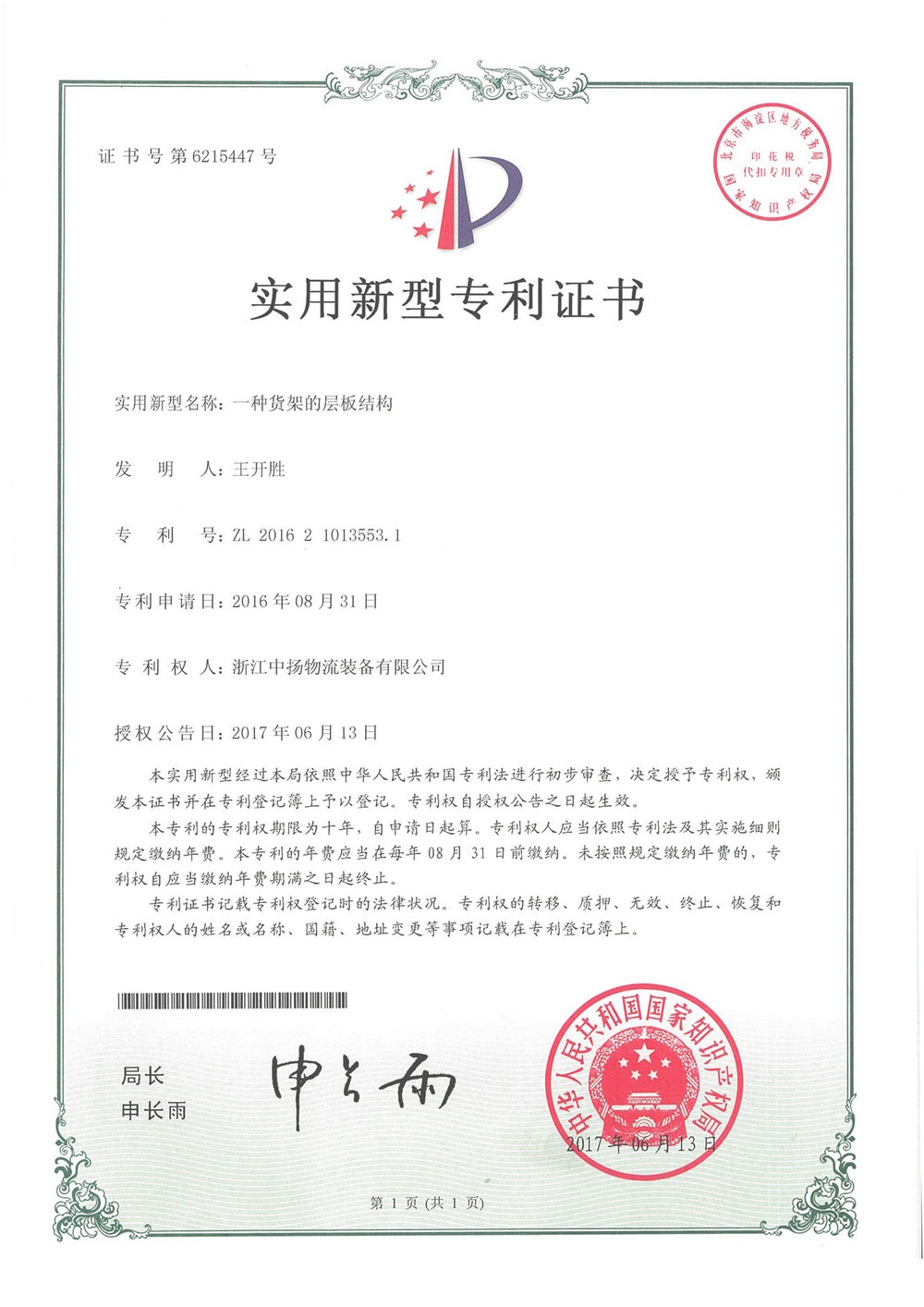 浙江中揚儲存設備股份有限公司正式成立。